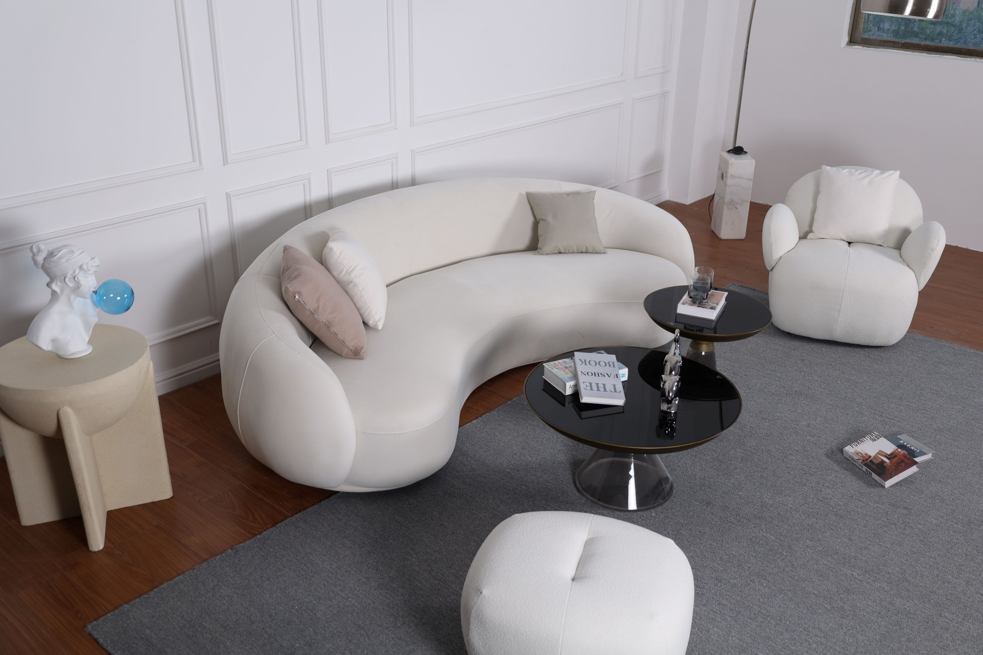 Stap binnen in een wereld van subtiele elegantie met de Sirius sofa, een moderne interpretatie van mid-century design. De sofa belichaamt moderne elegantie en comfort, met zijn nadruk op zachte rondingen en een luxe Bouclé stof, wat resulteert in een elegante en comfortabele zitervaring.